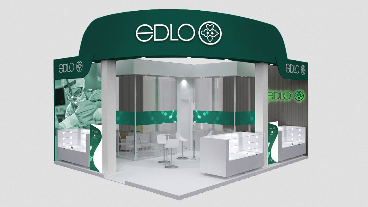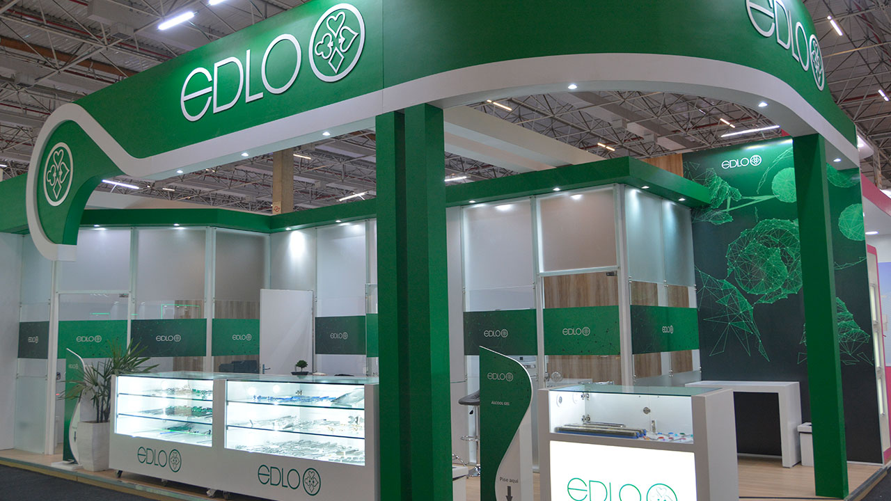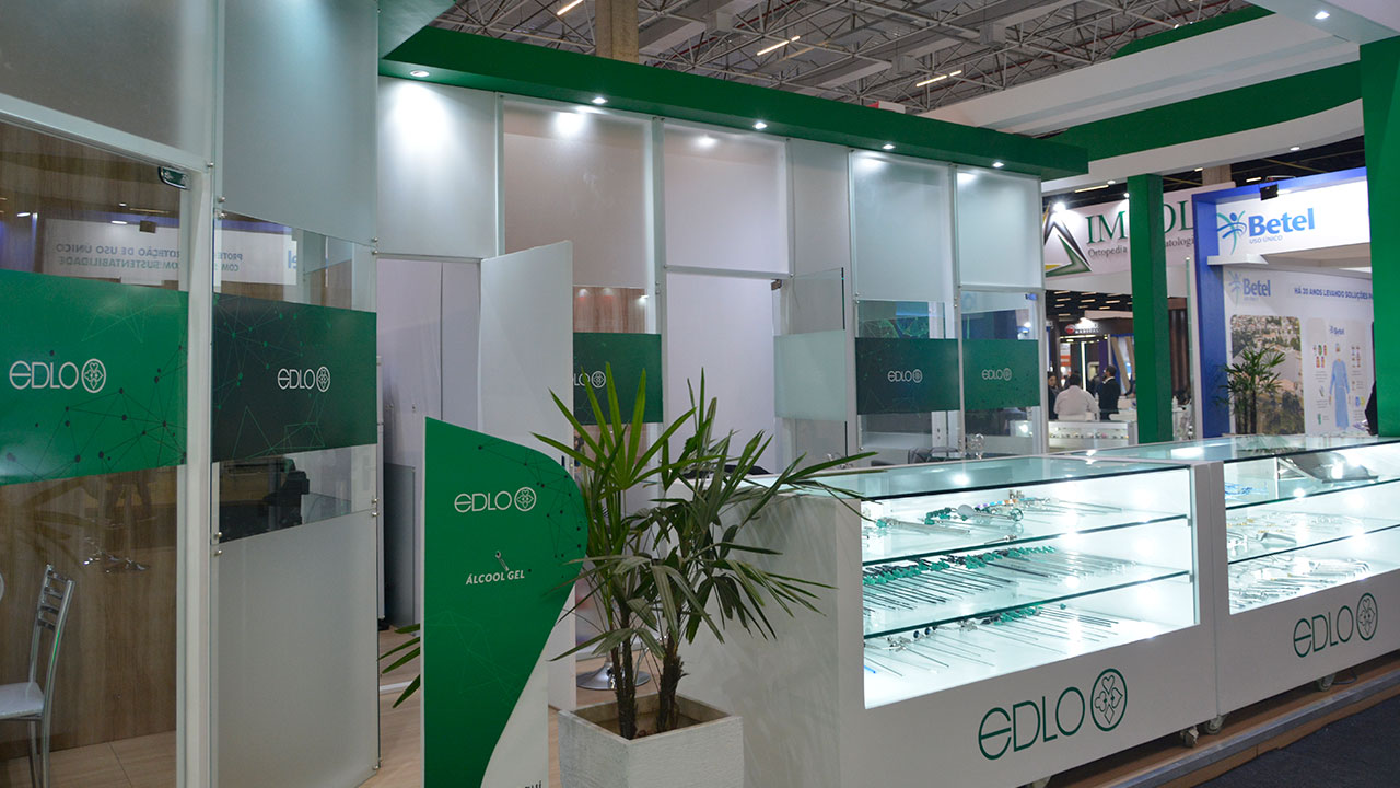 A Edlo, sempre presente em diversas feiras médicas, apresenta sua identidade visual e produtos de forma moderna a cada nova participação, demandando a criação de adesivos para personalizar seus projetos de estandes.