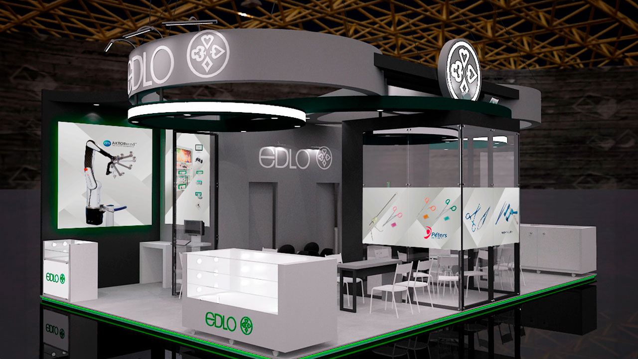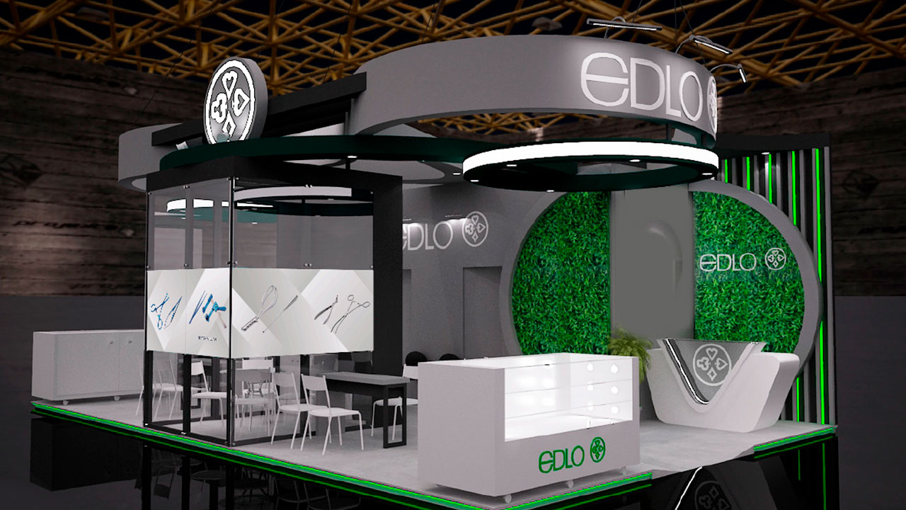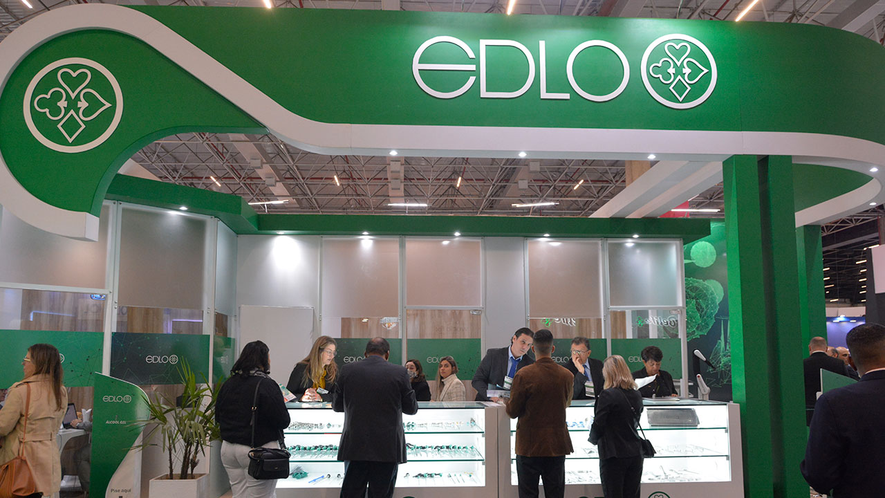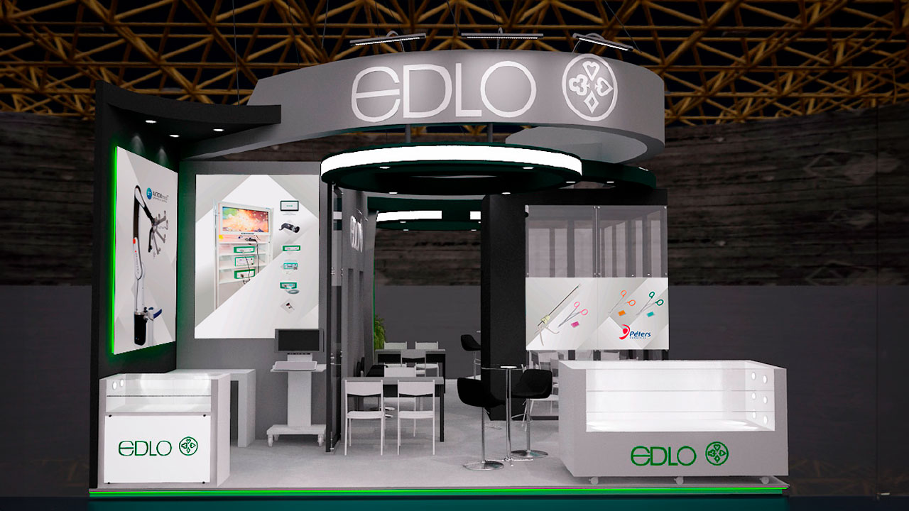 A Edlo, sempre presente em diversas feiras médicas, apresenta sua identidade visual e produtos de forma moderna a cada nova participação, demandando a criação de adesivos para personalizar seus projetos de estandes.