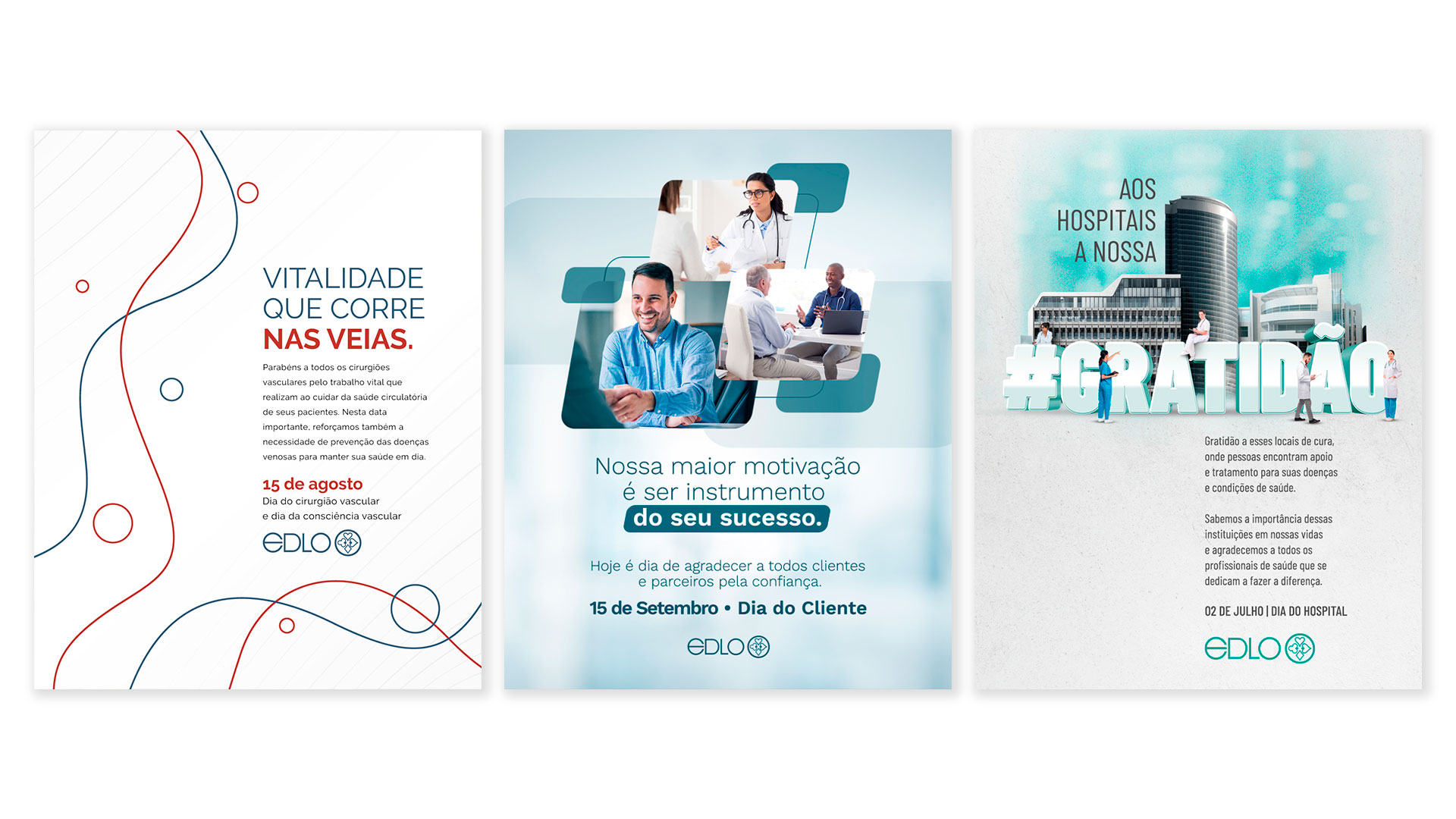A Edlo está presente no Instagram, Facebook e Linkedin, apresentando suas linhas de produtos, informando sobre seu uso, além de registrar sua presença em feiras e congressos. A cada ano é trabalhado um calendário de datas comemorativas, contemplado diversas especialidades médicas e dias especiais.